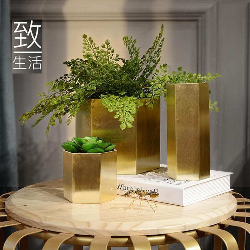 sexangle SS201 table stainless steel flower vase for home and office decoration